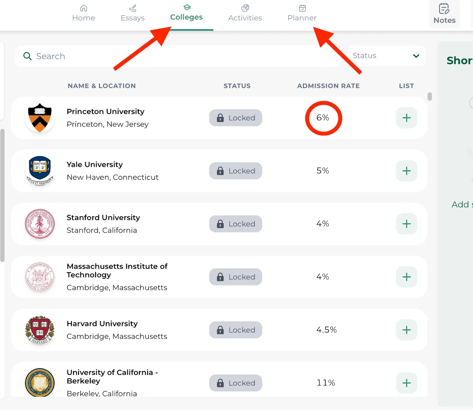 Kollegio is a perfect tool to use in this process because of its planning feature, giving the user free reign to edit their college list and showing the requirements and aspects of the college (tuition/admissions).